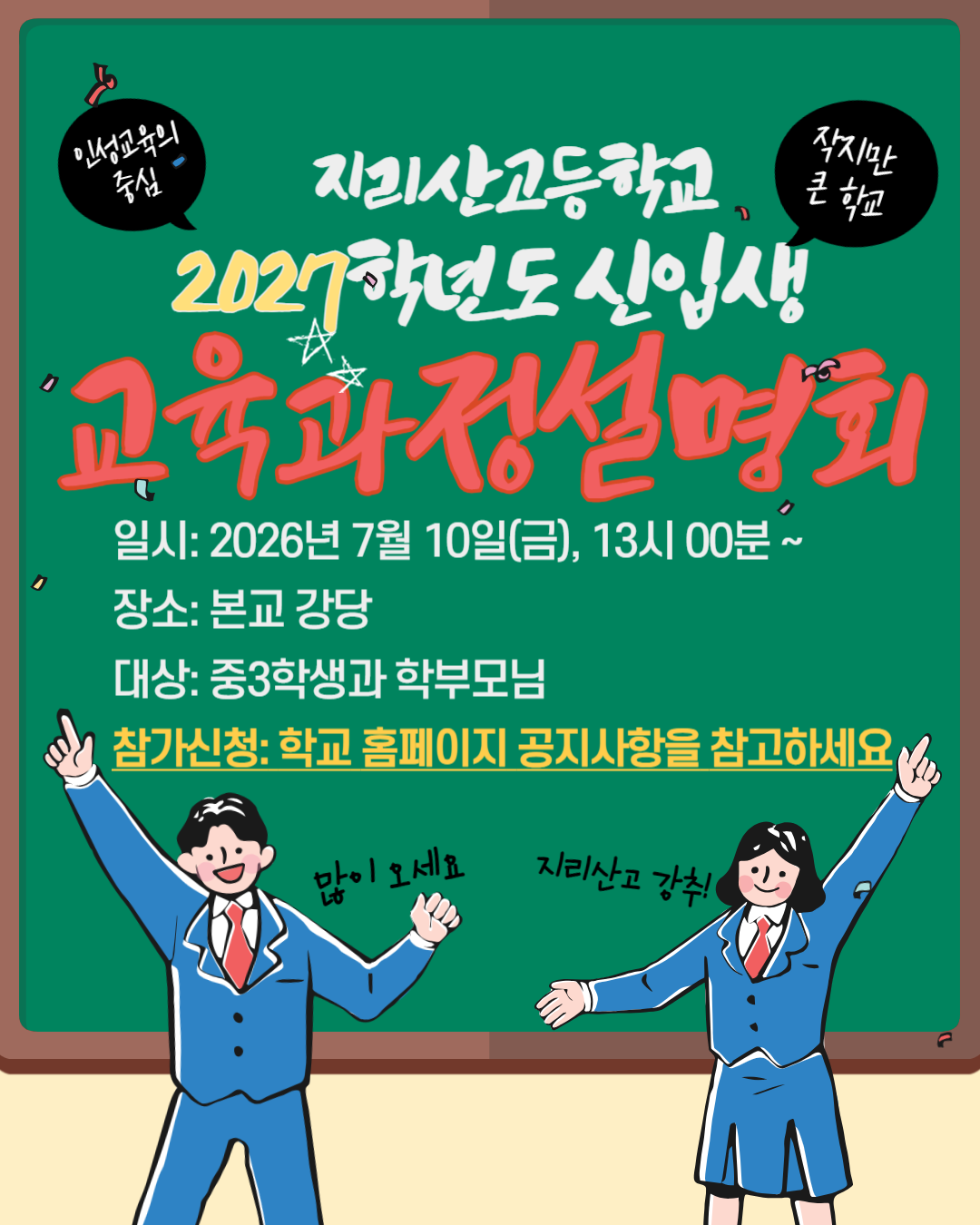 2027학년도 신입생 모집을 위한 교육과정설명회(이미지를 클릭하세요)