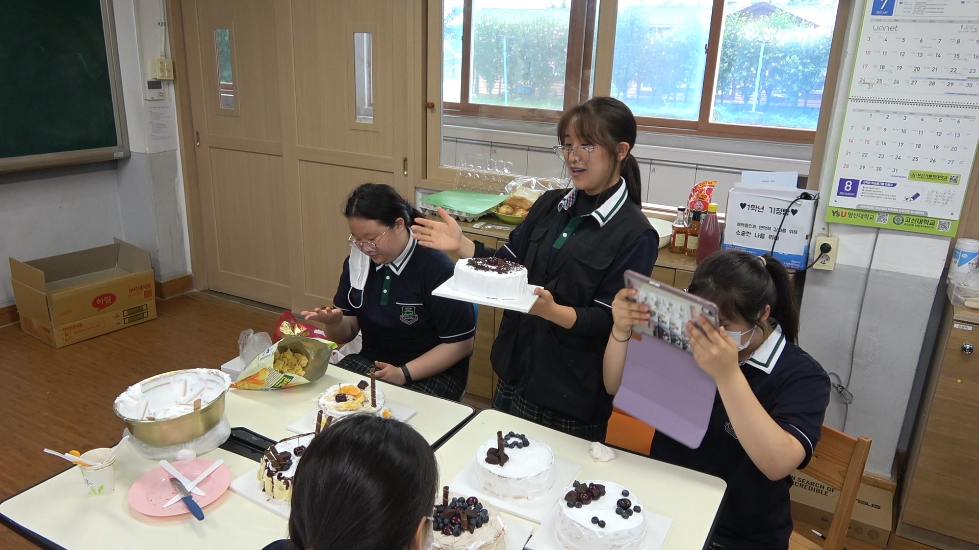 전교생은, 7월 18일 힐링푸드체험을 실시하였습니다. 샌드위치 재료로 자신이 어떤 인간관계를 만들고 싶은지 이야기 해보고 완성된 케이크로 자신이 살아가며 영향을 주었던 사건과 인물을 발표하는 시간으로 자신이 어떤 사람인지와 어떤 사람이 되고 싶은지에 대하여 생각해볼 수 있는 계기가 되었습니다.