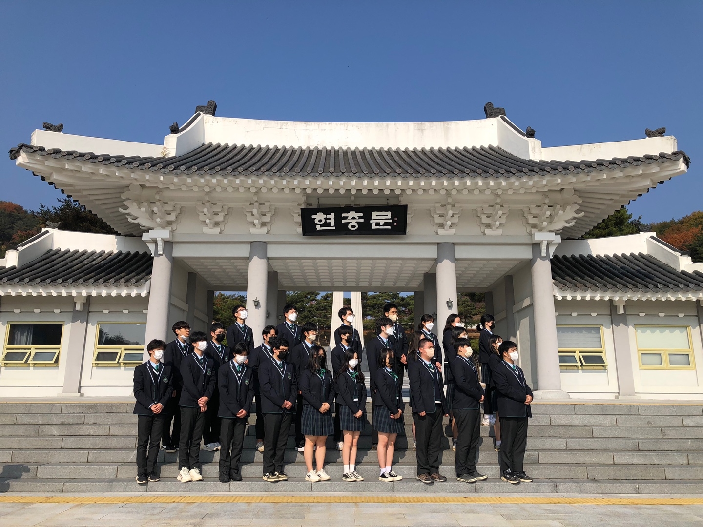 1, 2학년 학생은 11월 11일, 유엔 참전용사 국제 추모의 날 행사에 참여했습니다. 국립산청호국원에서 열린 이번 행사에서 학생들은 호국원 내 봉안담을 포함한 환경정화 봉사활동을 하였습니다. 그리고 오전 11시 11분에 부산을 향해 묵념을 하였습니다.