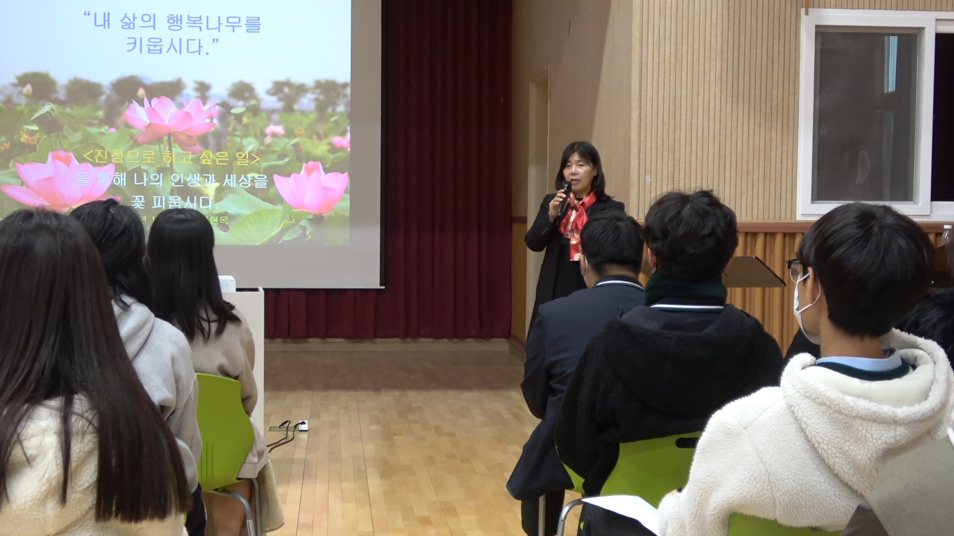 전교생은 11월 29일, 권현옥 산부인과 원장님의 봉사활동을 주제로 한 특강을 들었습니다.
