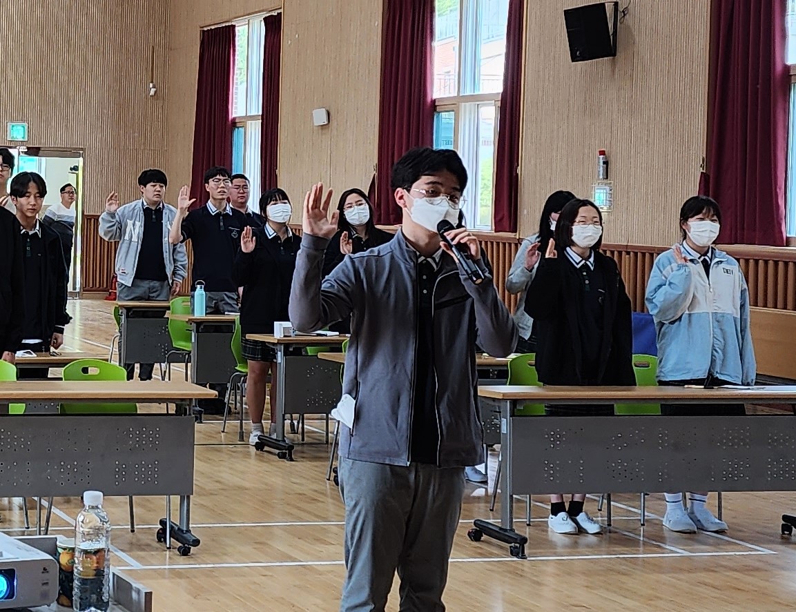 2023년 5월 11일, 치원관에서 미운사람 사랑하기 선서식 및 사례발표회가 열렸습니다. 학교폭력 예방과 학생의 관계회복능력을 함양시키고자 열린 이번 행사에서 학생들은 타인을 존중하자고 다짐하였습니다.