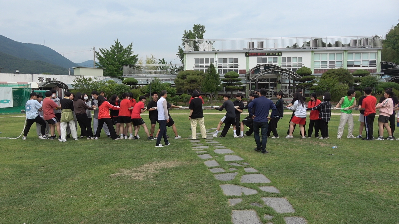 전교생은 5월 26일 체육대회에 참가하였습니다.