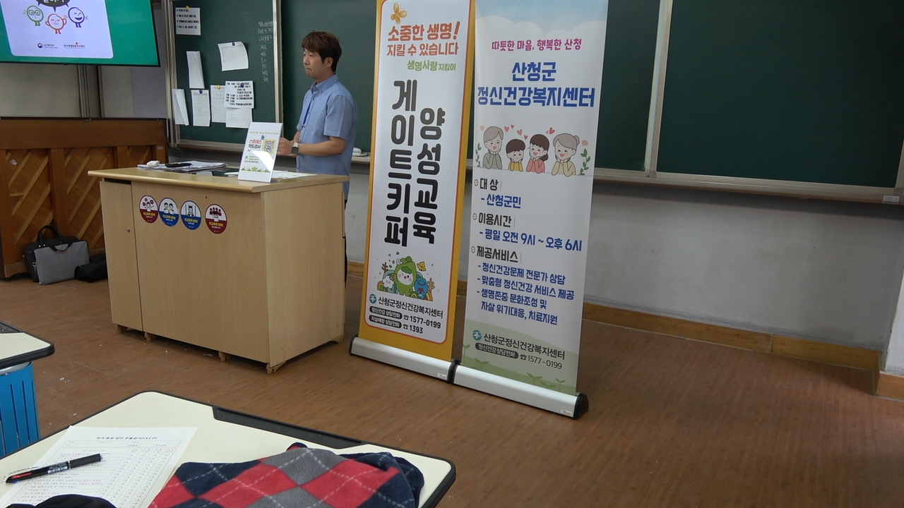 1학년 학생들은 7월 10일, 산청군정신건강센터에서 주최하는 생명사랑지킴이 교실에 참가했습니다.