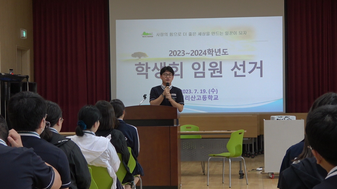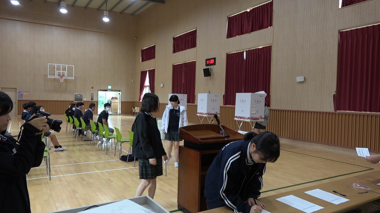 7월 19일 학생들은 치원관에서 2023, 2024학년도 학생회 임원 선거를 실시하였습니다. 1년 동안 학교를 이끌어갈 학생회 임원들을 선출하기 위해 전교생은 자신들의 소중한 투표권을 행사하며 민주시민으로서의 소양을 길렀습니다.