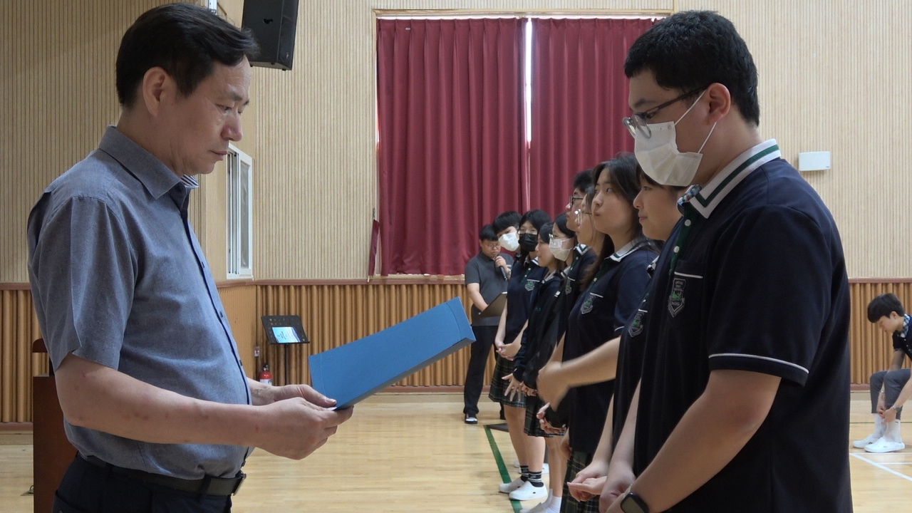 7월 21일 치원관에서 여름방학식이 거행되었습니다. 학교는 1학기를 마무리 하고 26일간의 방학에 들어갔습니다. 이날 방학식에서 학생들은 다양한 교내상과 대외상을 받으며 한 학기 동안 노력한 성과를 확인하였고, 교장선생님의 훈화말씀을 들으며 여름 방학을 알차게 보내자는 결심을 하였습니다.